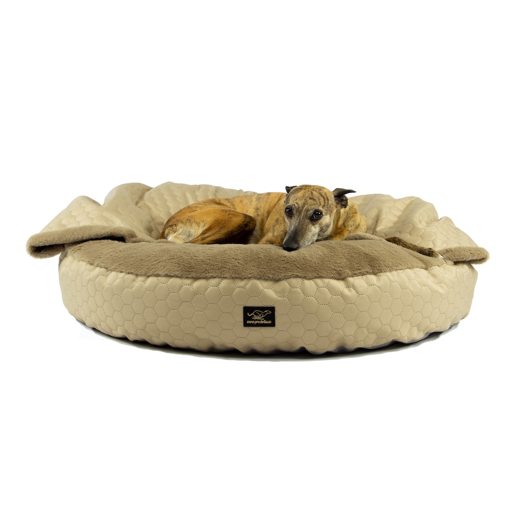 Luxusní zalézací pelíšek nejen pro chrty v kombinaci proševu se vzorem plástve a heboučké husté kožešiny. Maximální pohodlí a tepelný komfort v jednom. Ideální místo pro bezstarostný odpočinek Vašeho pejska.