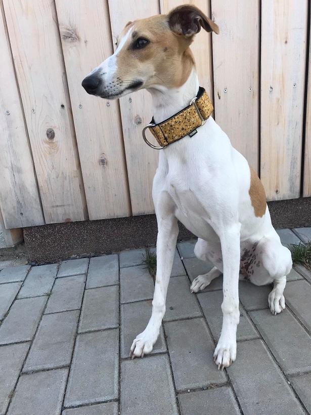 Bavlněný obojek pro chrty v hořčičné barvě s vzorem květin ...