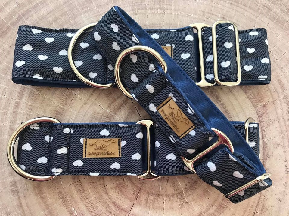 Bavlněný obojek s motivem srdíček na modrém saténu ...