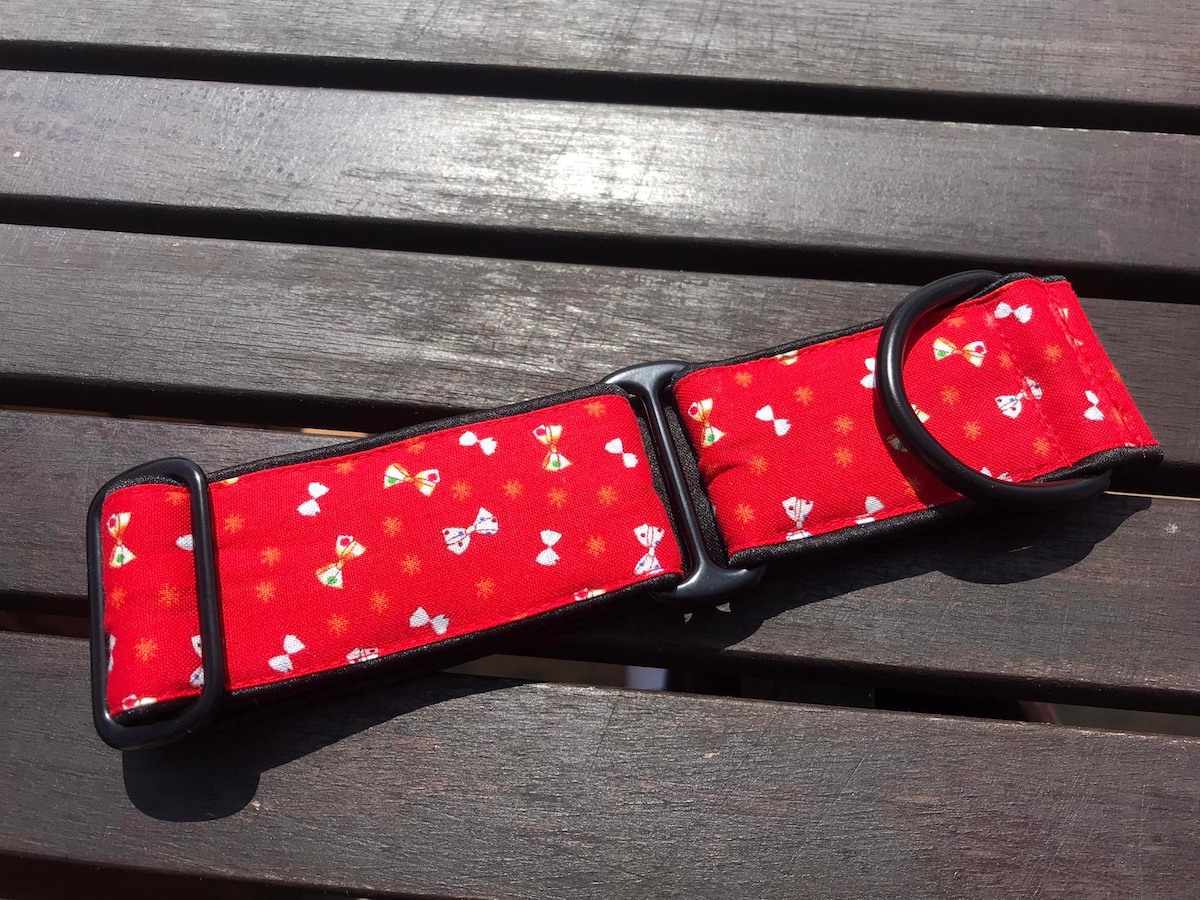 Červený obojek se vzorem mašliček a černým kováním pro psí dámy, pány a štěňátka. Obojek je pro maximální pohodlí pejska podšitý jemným, ale odolným saténem. Obojek je tak vhodný i pro pejsky s citlivým krkem.