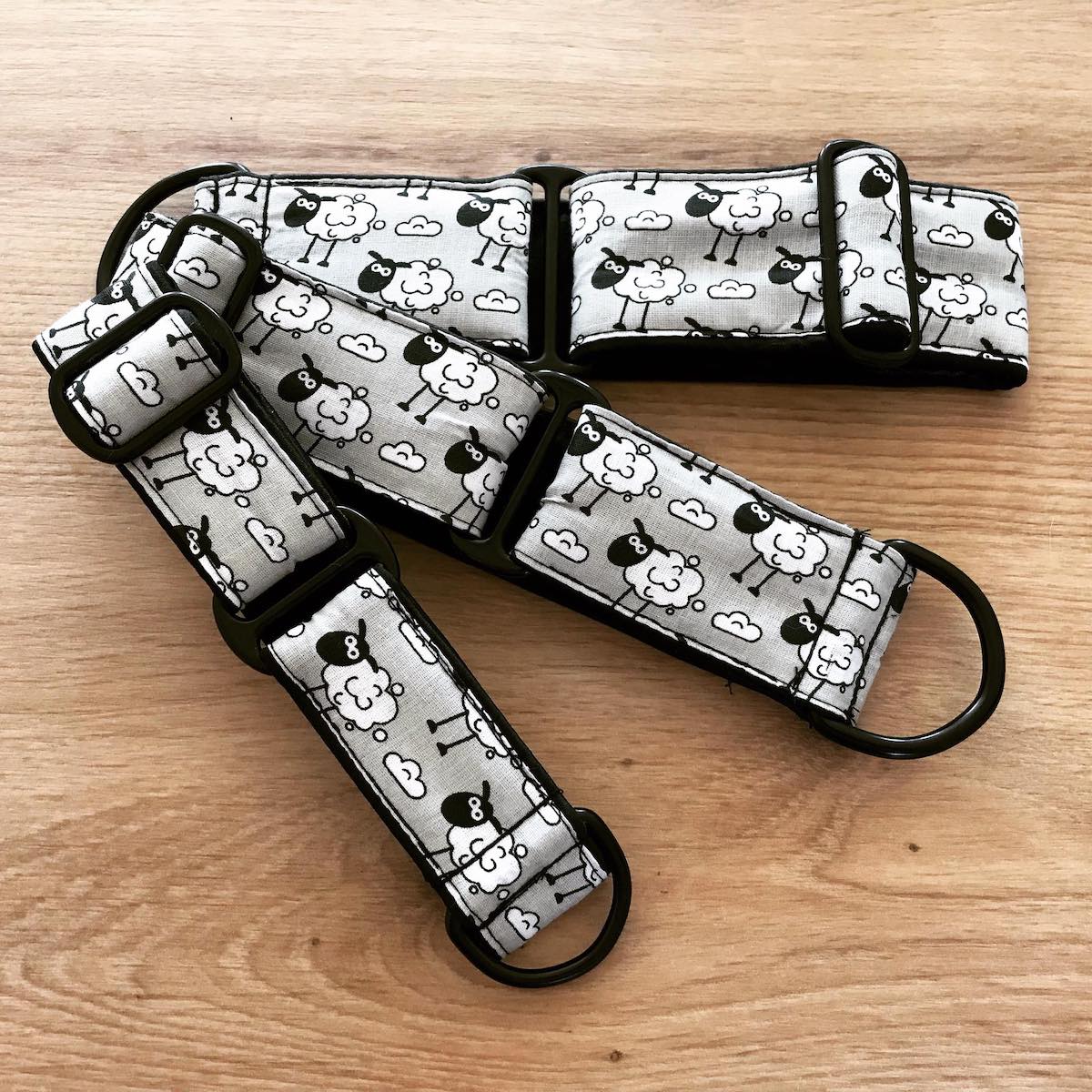 Veselý obojek s ovečkami a s černým kováním, který ozdobí každý jemný psí krček. Obojek je vhodný jak po psí pány, tak pro psí dámy a také do štěněčích výbaviček.