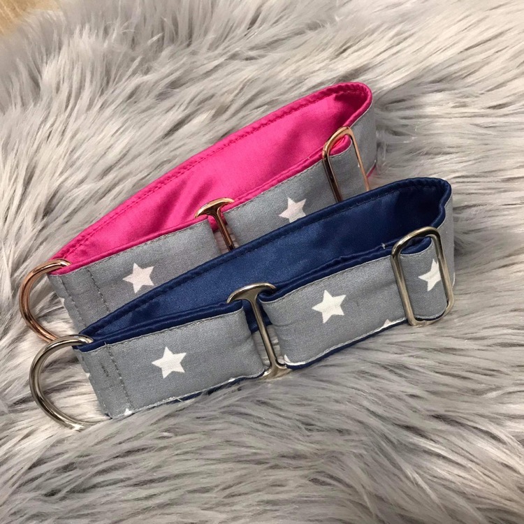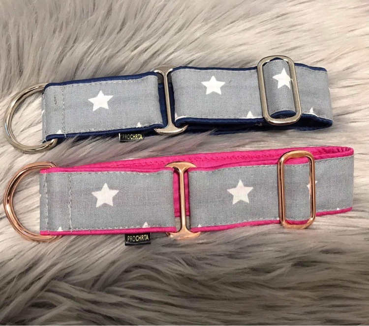 Jednoduchý hvězdičkový obojek v šedé barvě s barevným podšitím pro psí dámy, pány a štěňátka. Obojek je pro maximální pohodlí pejska podšitý jemným, ale odolným saténem. Obojek je tak vhodný i pro pejsky s citlivým krkem.