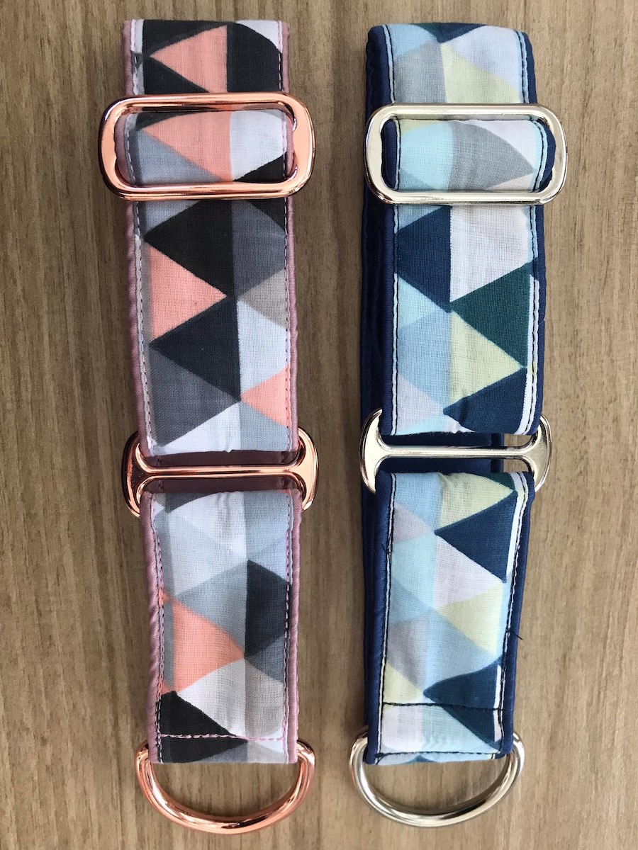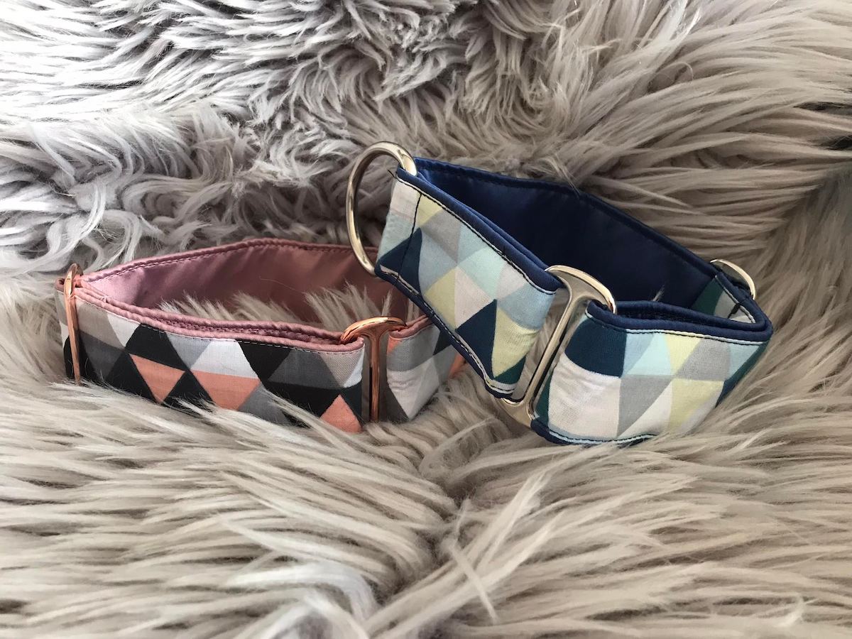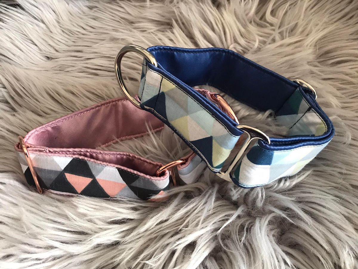 Obojek se vzorem trojúhelníku ve dvou barevných variantách...