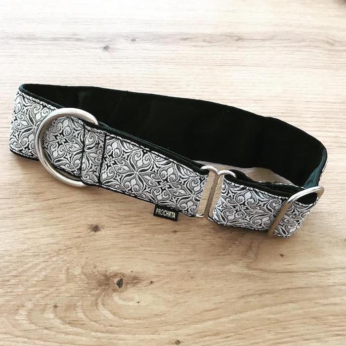 Brokátový obojek z královského brokátu s luxusním kováním v šíři 3 cm je vhodný především pro menší a střední plemena. Obojek je ušit z krásného elegantního brokátu. Obojek je podšitý saténem pro maximální komfort a celodenní nošení.