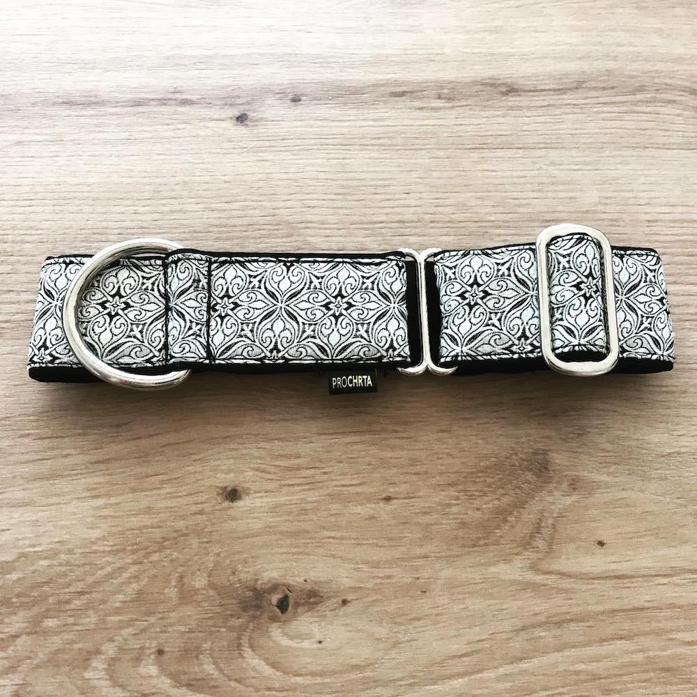 Brokátový obojek SILVER BLACK šíře 4 cm XL