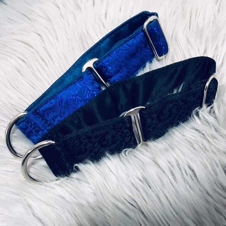 Brokátový obojek z královského brokátu s luxusním stříbrným kováním v šíři 3 cm je vhodný především pro menší a střední plemena. Obojek je podšitý saténem pro maximální komfort a celodenní nošení.