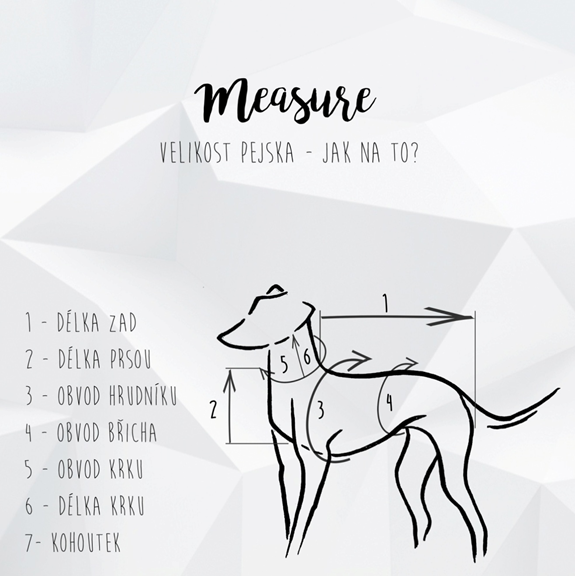 V obrázkách je znázorněno jak pejska co nejlépe vybrat, abyste vybrali tu správnou velikost. V případě jakýchkoliv dotazů nás neváhejte kontaktovat a rádi Vám pomůžeme s výběrem.