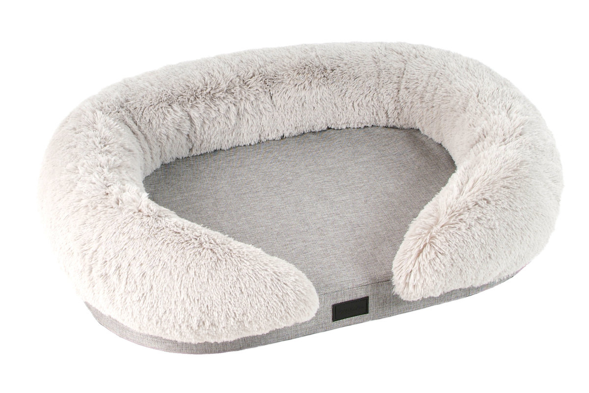 Kombinace kanape a chlupatého luxusu pro vašeho pejska! Pohodlný a hřejivý pelíšek oválného tvaru s příjemným okrajem.