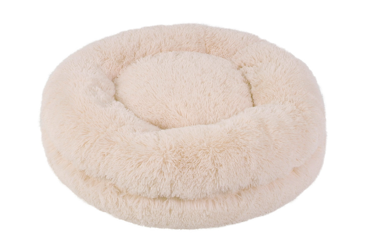 Extra pohodlný kulatý pelíšek ze soft fleecu s dlouhým vlasem a snímatelným povlakem.