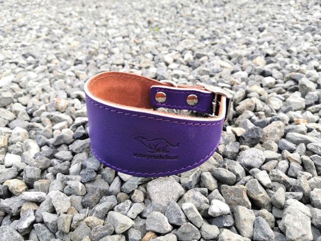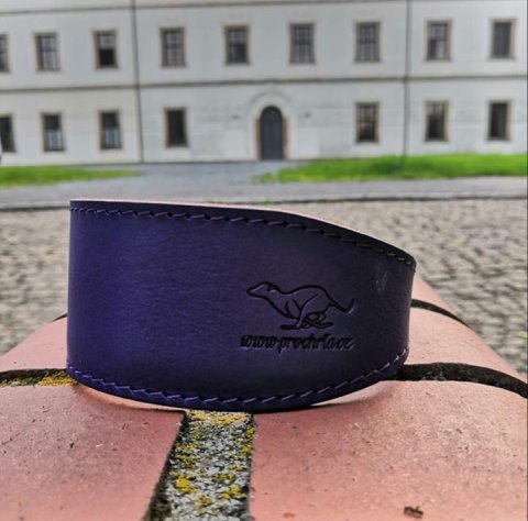 Horní kůže je v barvě FIALOVÁ a spodní strana obojku je v tmavě hnědé barvě.