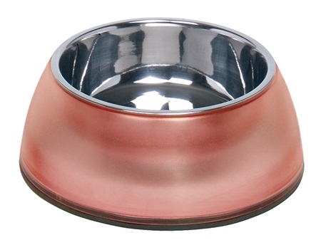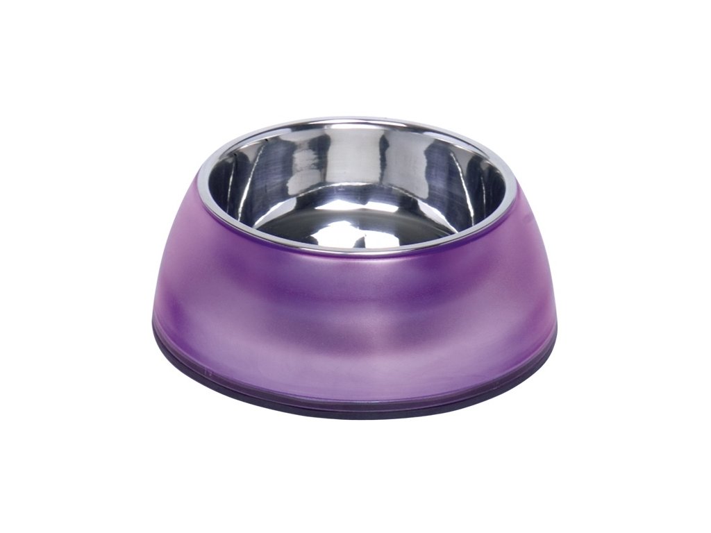 Nerezová miska o objemu 1,4 l vložená do pevné průhledné misky z plastu. Pouzdro je pevné, robustní, odolné vůči nárazům a poškrábání. Protiskluzový odnímatelný kroužek na spodní straně misky. Lze mýt v myčce.