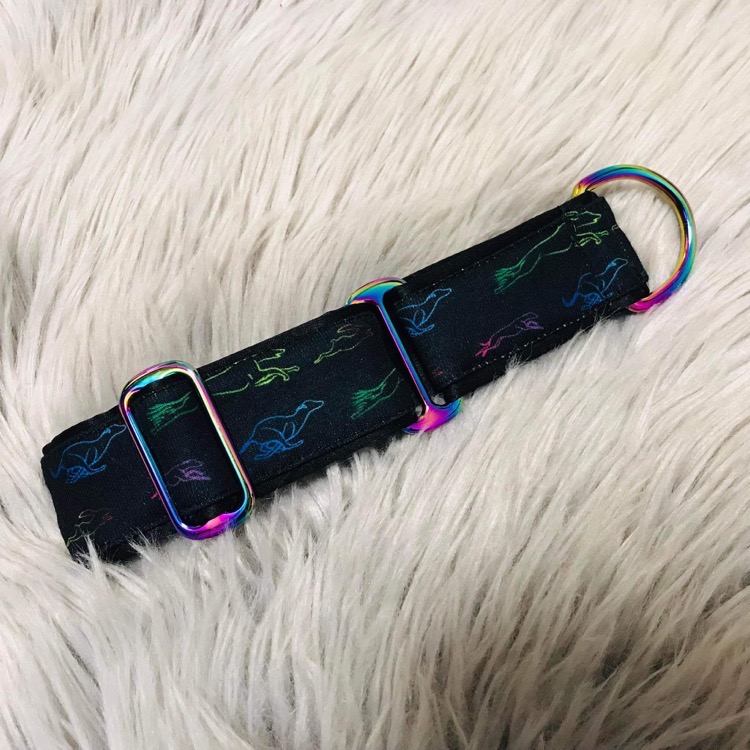 Rainbow obojek s běžícími chrty a s neobyčejným duhovým kováním! Obojek, ve kterém Váš pejsek nezapadne! Každý kus je originál!