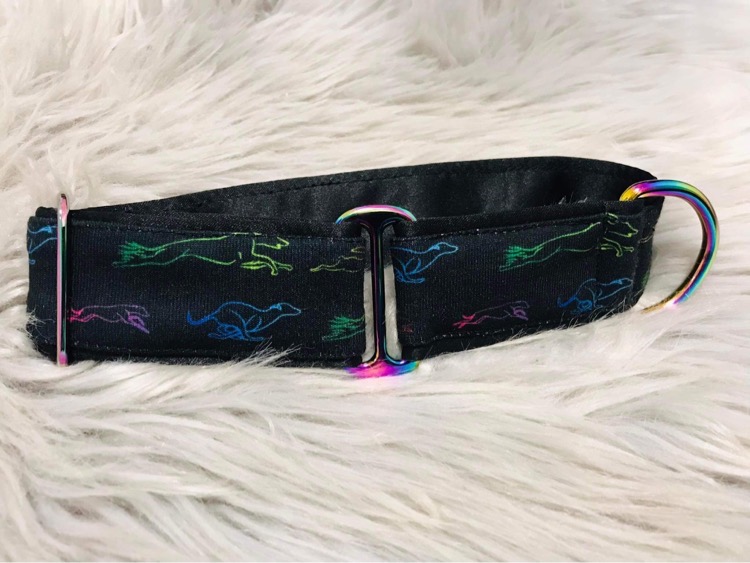 Rainbow obojek s běžícími chrty a s neobyčejným duhovým kováním! Obojek, ve kterém Váš pejsek nezapadne! Každý kus je originál!