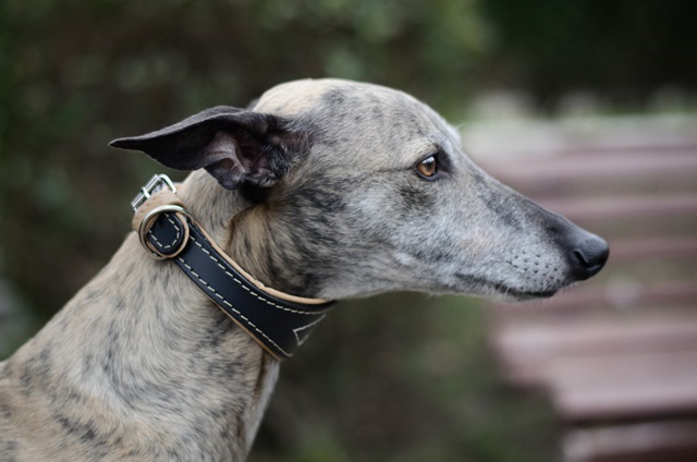 Obojek je polstrovaný a vyměkčený, je tedy pevný, ale zároveň jemný a ideální pro citlivý chrtí krk.