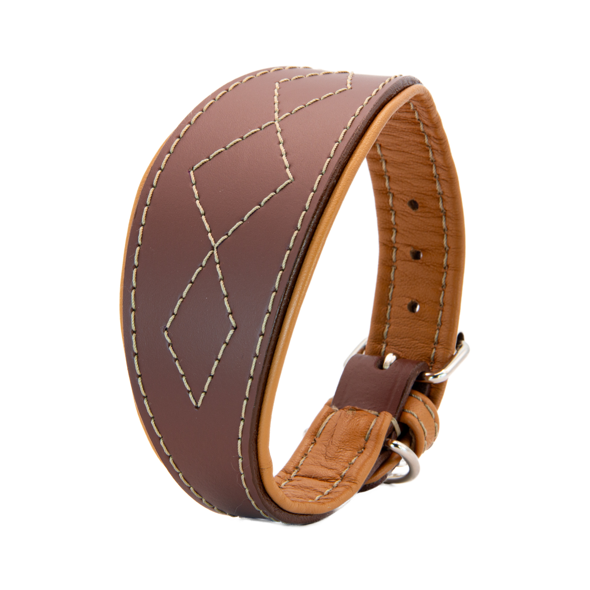 Nadčasový kožený obojek navržený speciálně pro potřeby chrtů – lehký, pohodlný a maximálně šetrný k jejich citlivému krku. Každý kus vzniká ručně u zkušeného sedláře, s důrazem na detail, funkčnost a dlouhou životnost. Díky kombinaci kvalitních materiálů a precizního zpracování je obojek nejen krásný na pohled, ale i perfektně sedí při každodenním nošení.