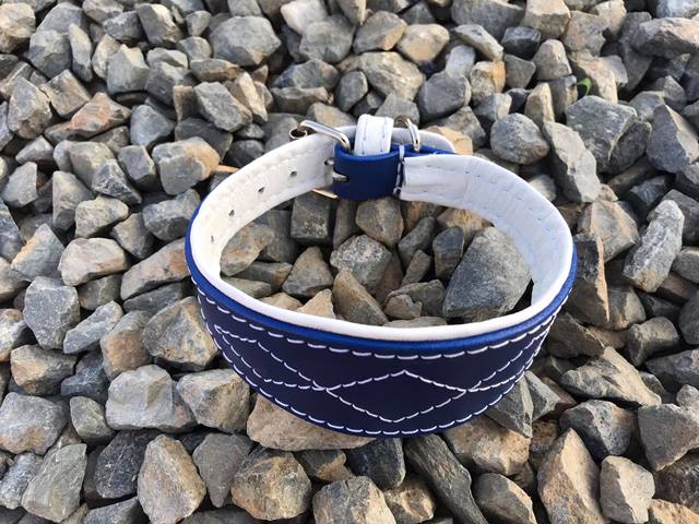 Kožený obojek v kontrastním modro bílém provedení, ocenění zejména psí kluci! Elegán mezi psími obojky, který snoubí kvalitu a krásu v jednom!
