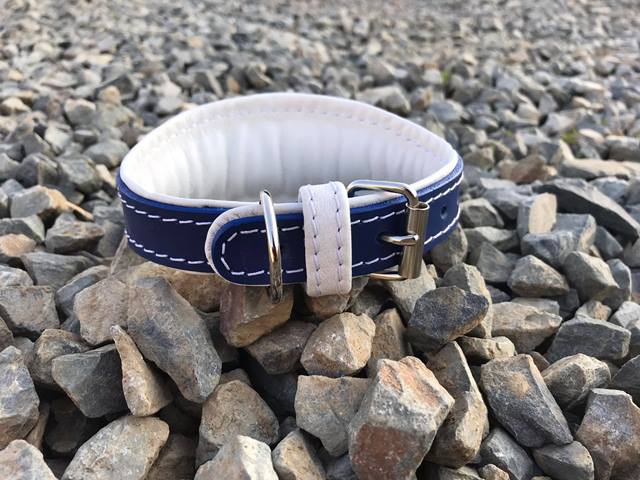 Obojek je polstrovaný a vyměkčený, je tedy pevný, ale zároveň jemný a ideální pro citlivý chrtí krk.