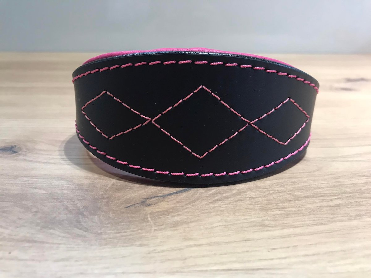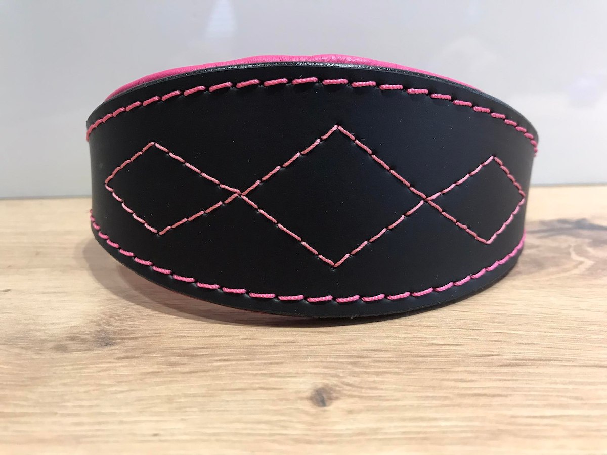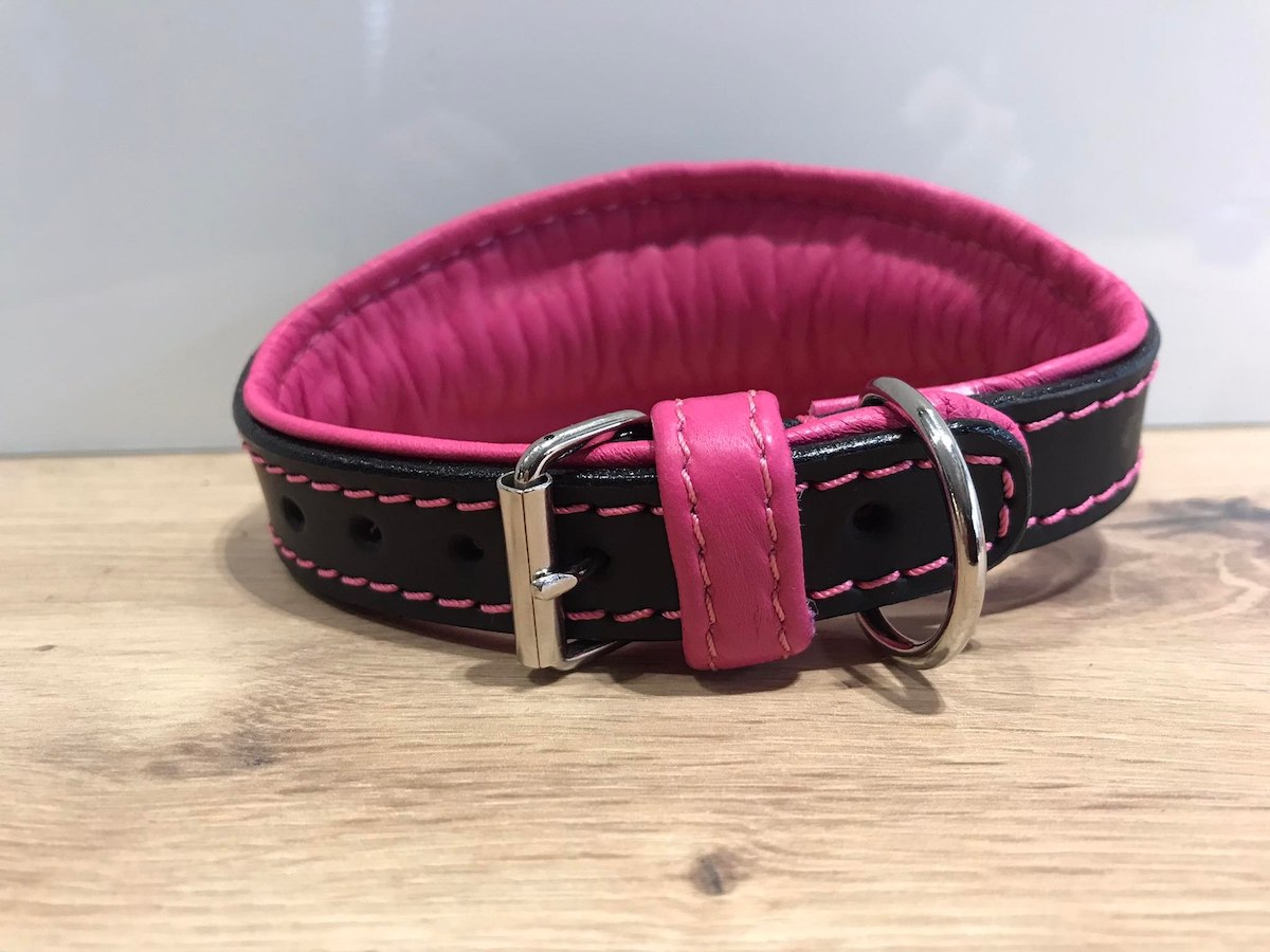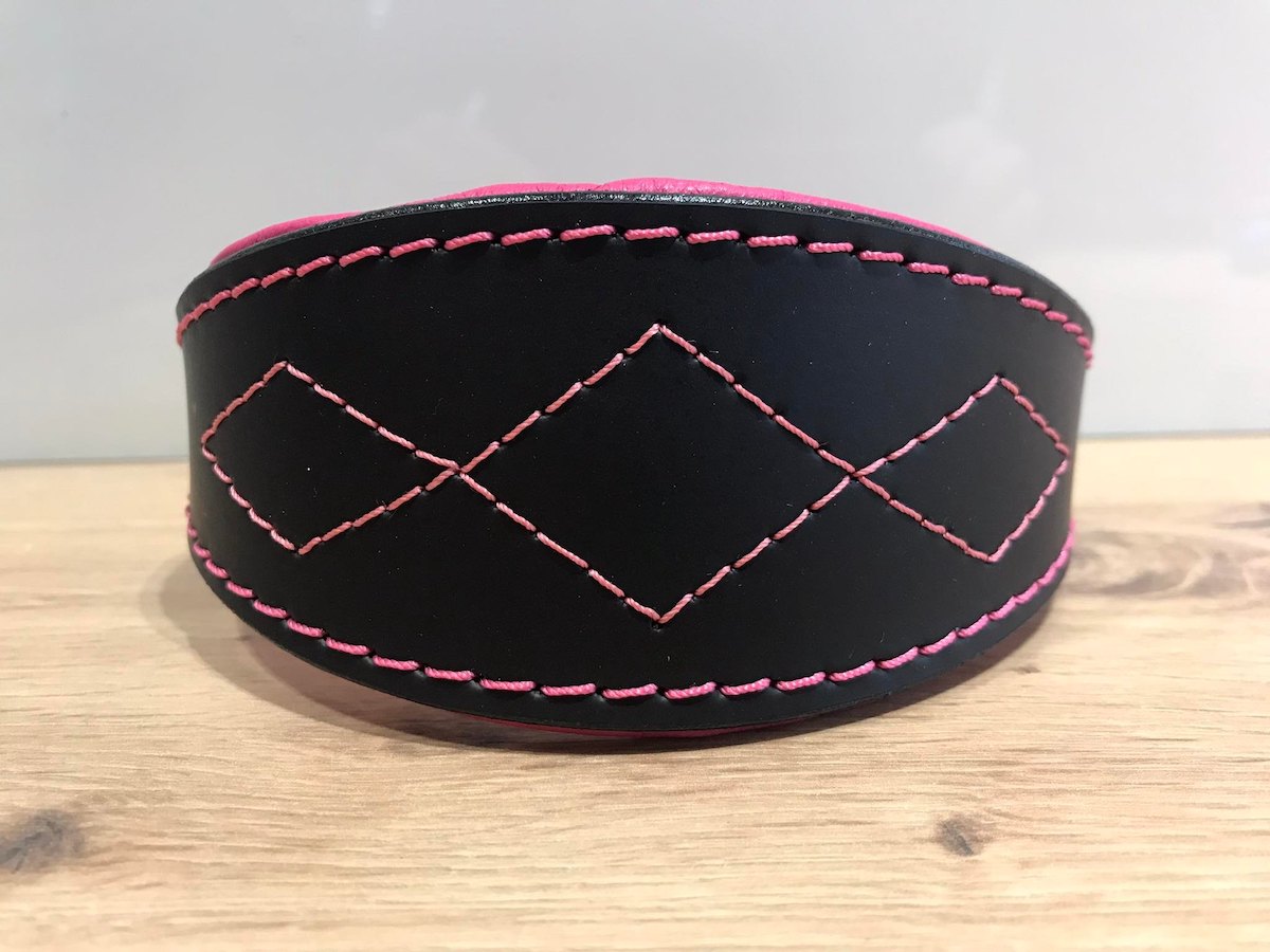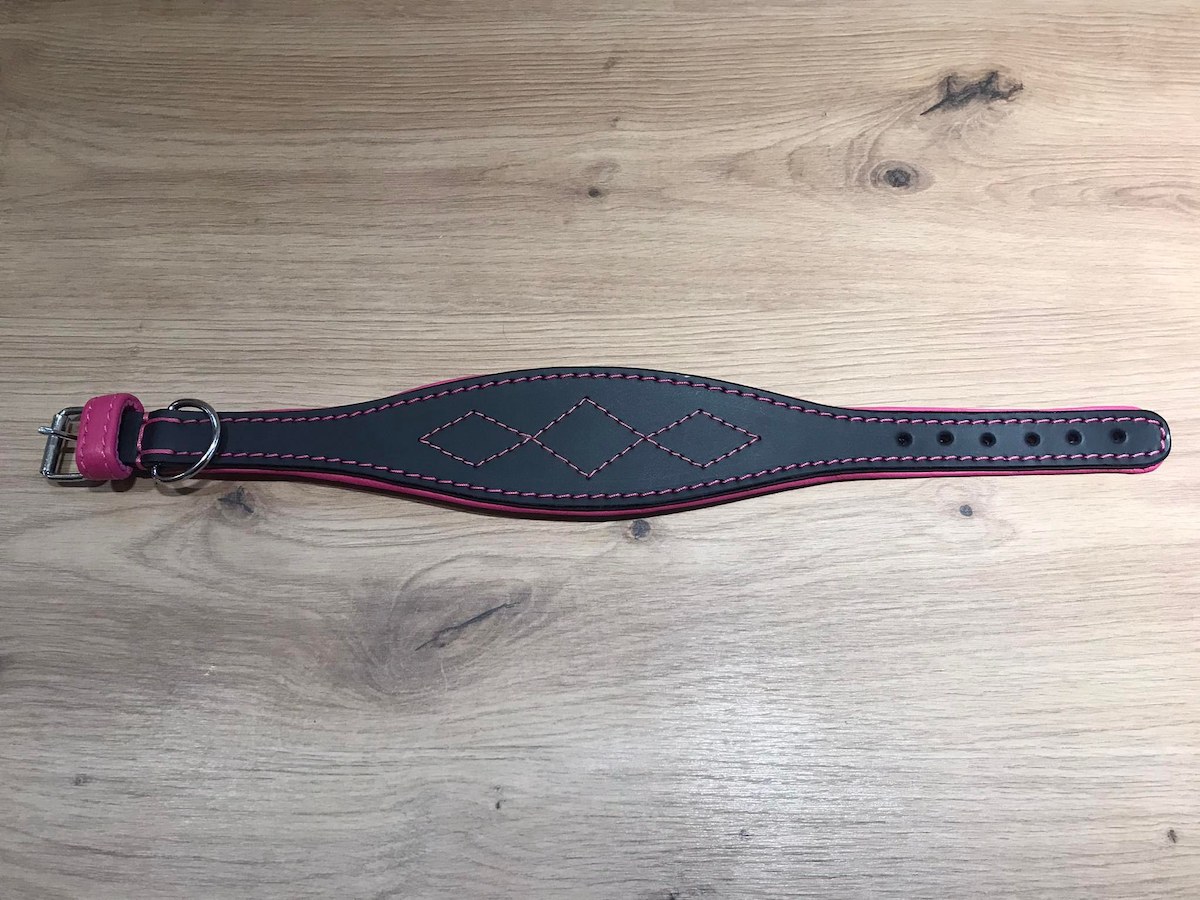 Maximálně vyměkčený kožený obojek v černo růžové barvě a doživotní kvalitě!