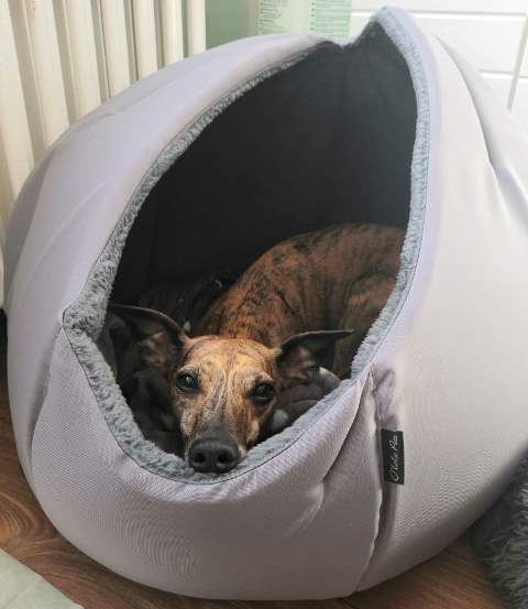 Pelíšek ve tvaru kukaně. Vrchní látka je snadno udržitelná a nepropustná. Vnitřek je tvořen měkkým a hřejivým coral fleecem.