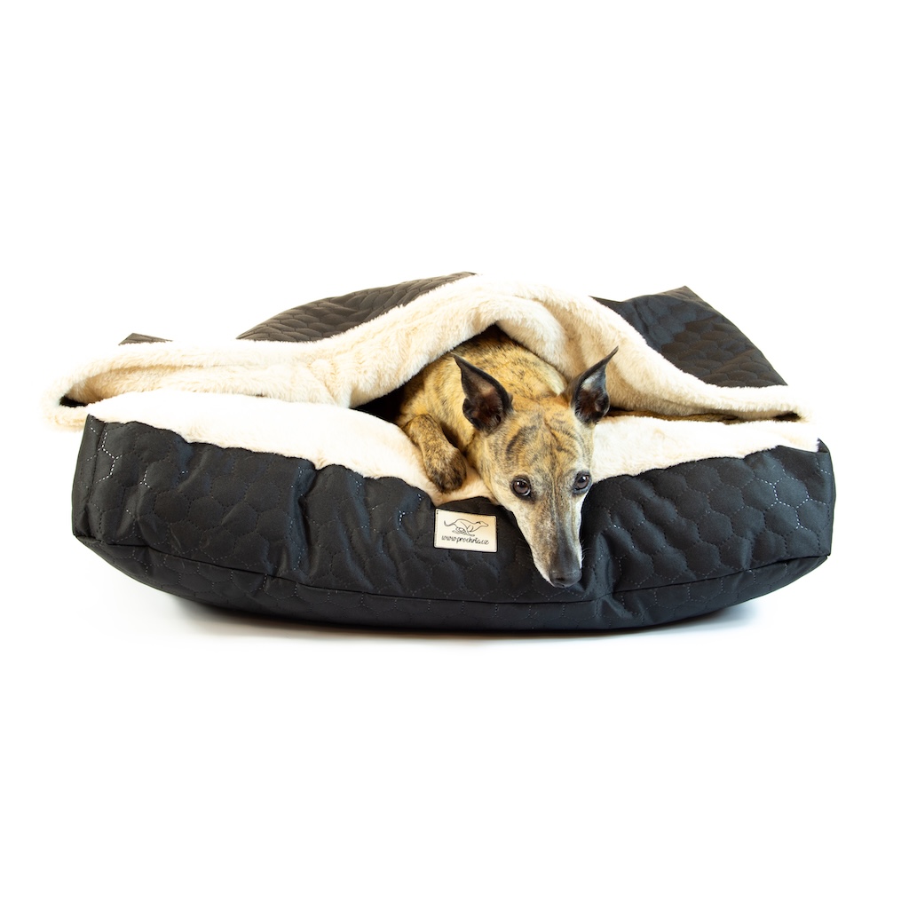 Luxusní zalézací pelíšek pro chrty v kombinaci proševu se vzorem plástve a heboučké husté kožešiny. Nabízí maximální pohodlí a teplo pro dokonalý odpočinek vašeho pejska.