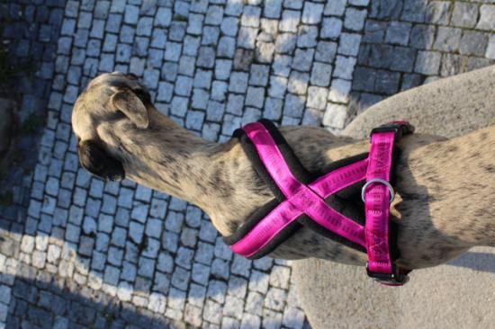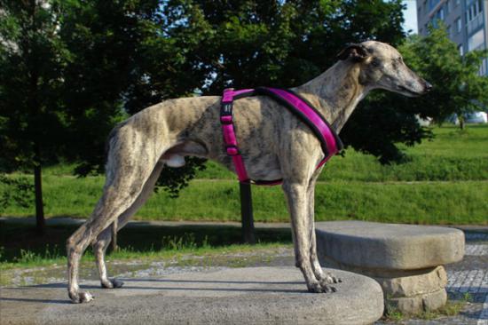 Postroj je vhodný pro střední až velké psy - whippet, galgo, saluki, greyhound.