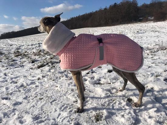 Zimní prošívaná bunda s umělou kožešinou pro chrty ...
