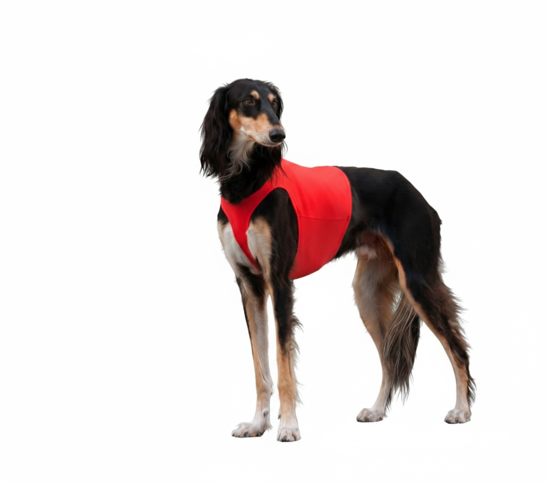 Set elastických skvěle padnoucích závodních triček z plavkoviny. Plavkovina je dokonale pružná a přilnavá, takže zajišťuje, aby se dečka neposunovala a držela pěkně u těla psa.