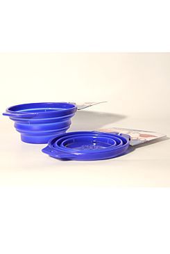 Barevná skládací cestovní miska ze silikonu s objemem 0,5l. Miska je ohebná a flexibilní a vejde se do každého zavazadla.