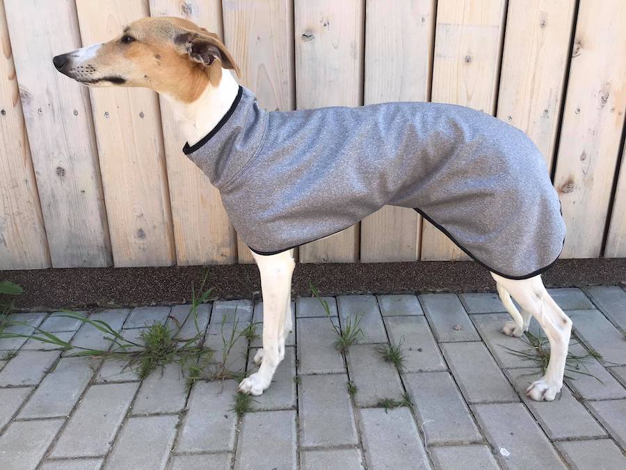Nepromokavá hřejivá bunda v elegantním sportovním provedení. Bunda je z jedné strany ozdobena saténovou etiketou s chrtem. Zapínání je na suchý zip. Bunda má anatomické tvarování ve hřbetní a ocasní části, proto se perfektně přizpůsobí pohybu psa, aniž by se nadzvedávala zadní část bundy. Přední část bundy je upravena k co největšímu pohybu psa (běhání, skákání) a zapínání na břišní části upraveno tak, aby nebylo znečištěno při vykonávání potřeby (ocení zejména majitelé psů). Obleček je doplněn elegantním stojáčkem, který kryje krk.