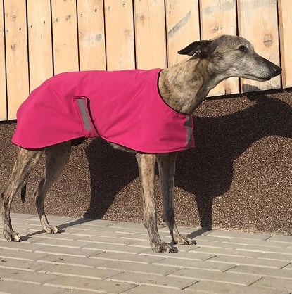 Nepromokavý hřejivý kabátek ve sportovním provedení vhodný do chladného počasí. Bunda je z jedné strany ozdobena saténovou etiketou s chrtem, v předu a na bočním zapínáním opatřena reflexním páskem. Bundička perfektně kryje celá záda a stehna psa a perfektně se přizpůsobí pohybu psa. Přední část bundy je upravena k co největšímu pohybu psa (běhání, skákání) a zapínání na břišní části upraveno tak, aby nebylo znečištěno při vykonávání potřeby (ocení zejména majitelé psů).