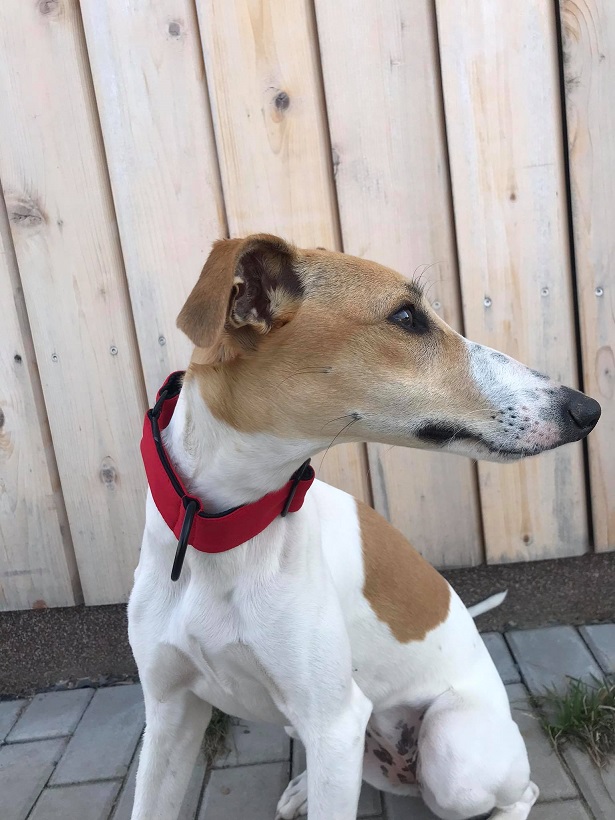 Elegantní softshellový obojek s černým kováním, který ozdobí každý jemný psí krček.