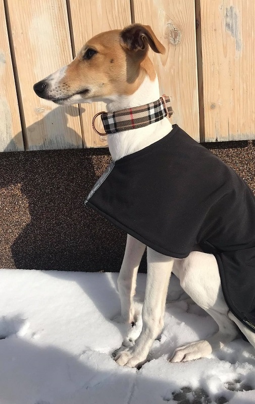 Nepromokavý hřejivý kabátek ve sportovním provedení vhodný do chladného počasí. Bunda je z jedné strany ozdobena saténovou etiketou s chrtem, v předu a na bočním zapínáním opatřena reflexním páskem. Bundička perfektně kryje celá záda a stehna psa a perfektně se přizpůsobí pohybu psa. Přední část bundy je upravena k co největšímu pohybu psa (běhání, skákání) a zapínání na břišní části upraveno tak, aby nebylo znečištěno při vykonávání potřeby (ocení zejména majitelé psů).