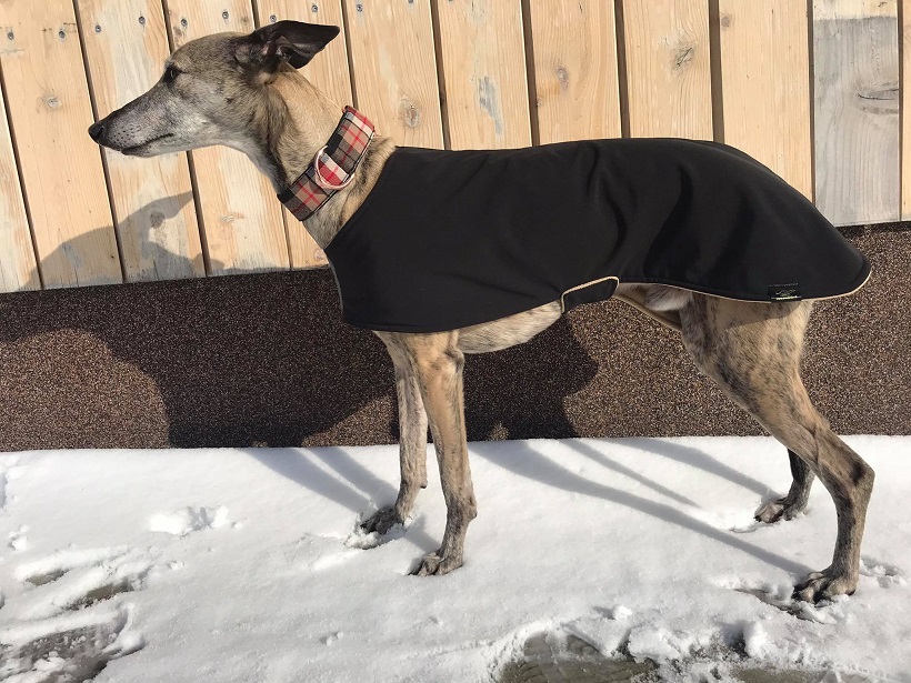 Nepromokavý hřejivý kabátek ve sportovním provedení vhodný do chladného počasí. Bunda je z jedné strany ozdobena saténovou etiketou s chrtem, v předu a na bočním zapínáním opatřena reflexním páskem. Bundička perfektně kryje celá záda a stehna psa a perfektně se přizpůsobí pohybu psa. Přední část bundy je upravena k co největšímu pohybu psa (běhání, skákání) a zapínání na břišní části upraveno tak, aby nebylo znečištěno při vykonávání potřeby (ocení zejména majitelé psů).