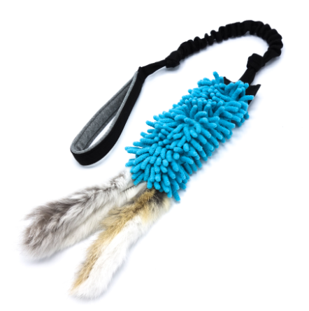 Přetahovací střapec s králičí kůží je ideální motivační hračka pro chrty.