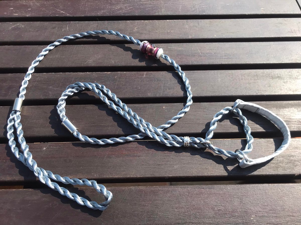 Luxusní ručně pletené výstavní vodítko ve čtyřech barvách s podkrčníkem širokým 2 cm.