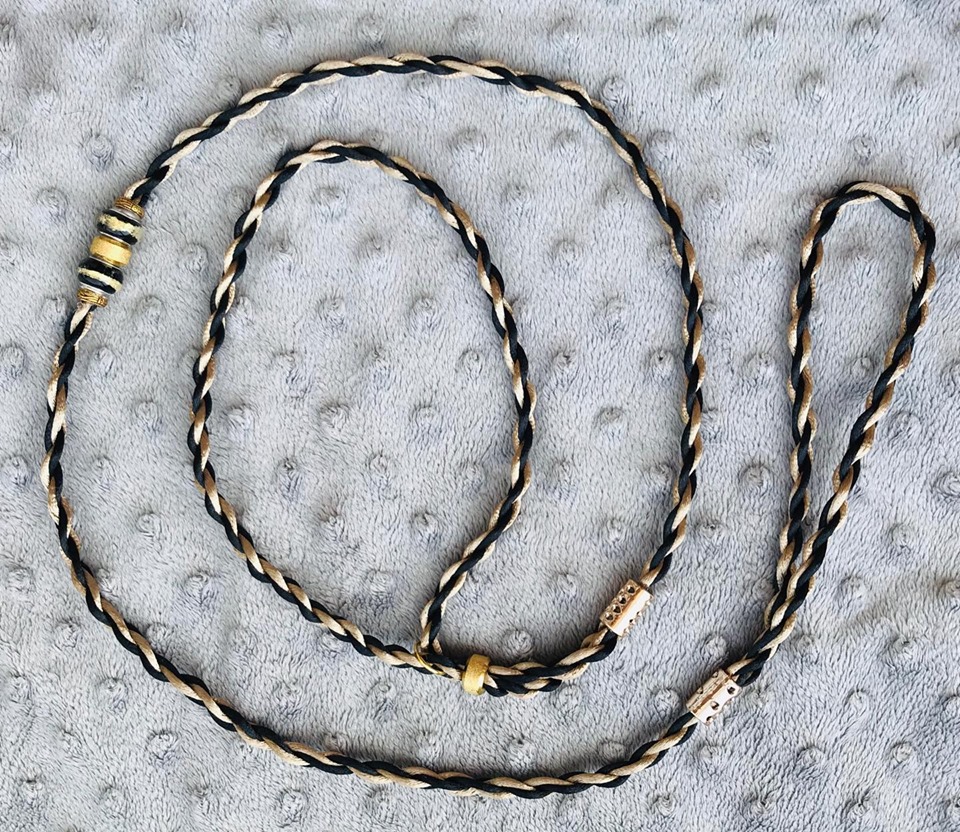 Výstavní vodítko zdobené korálky, délka 120cm v různých barvách.