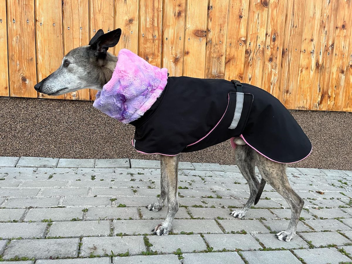 Bunda je vyrobena z vysoce kvalitního softshellu v kombinaci s fleecem a je doplněna reflexními prvky pro zajištění bezpečí. Bunda je prodyšná a zároveň odolá větru i dešti. Je vhodná na zimní nošení  a udrží Vašeho pejska v teplé i při delší zimní vycházce. Bundička kryje všechny důležité části těla - krk, záda, stehna a břicho.