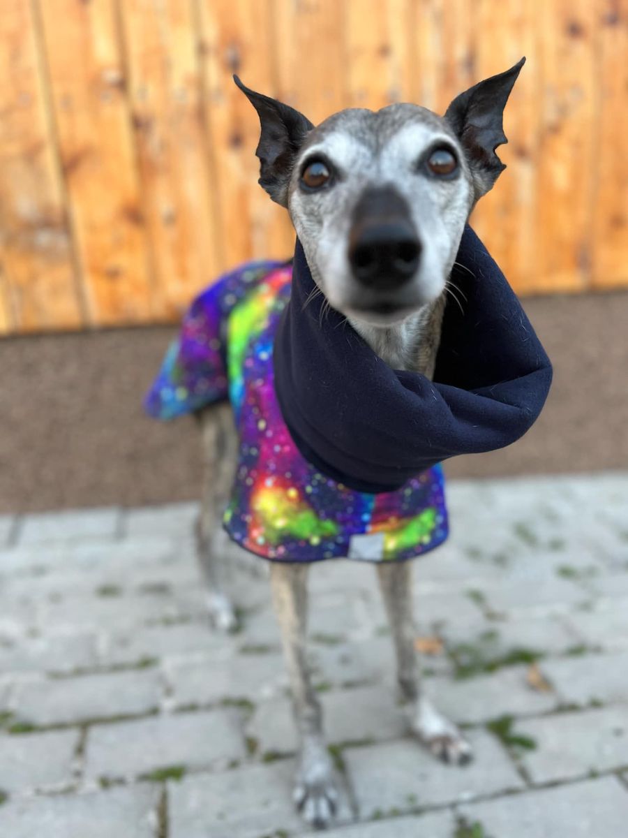 • Velikosti vybírejte podle délky zad Vašeho chrťáka – tedy délky od kohoutku až ke kořeni ocasu a obvodu hrudníku. Pokud je obvod hrudníku k délce zad příliš velký, vyberte velikost s kratší délkou zad. Pokud si nejste jisti výběrem velikosti, neváhejte nás kontaktovat!